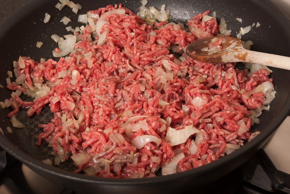 Vet een ovenschaal in met boter en verdeel het gehaktmengsel erover.