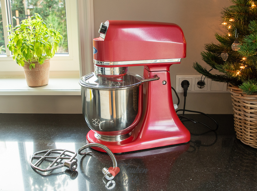 Voor dit recept gebruik ik de planeetmenger van Maxima. Een ontzettend sterke keukenmachine met grote mengkom van 7 liter en 3 verschillende deeg-, beslaghaken. Het kneden van het briochedeeg is voor de krachtige moter een fluitje van een cent. Hij maakt tijdens het kneden weinig geluid. Verder is hij eenvoudig in gebruik en makkelijk schoon te maken.