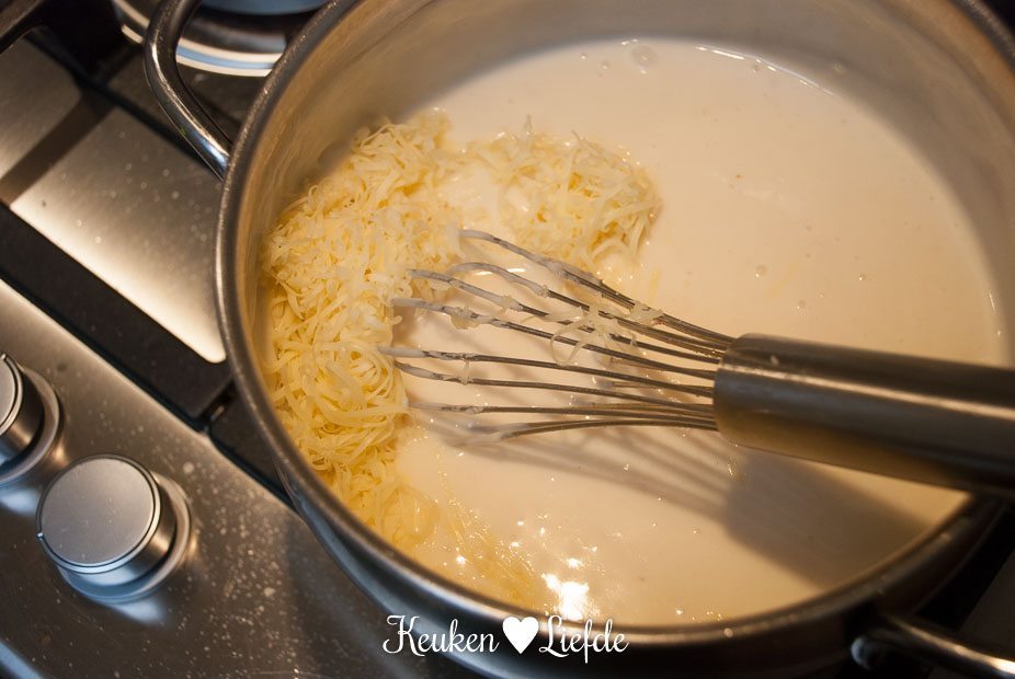 Gratineer circa 30 minuten in de oven, of totdat de bovenkant goudbruin is.