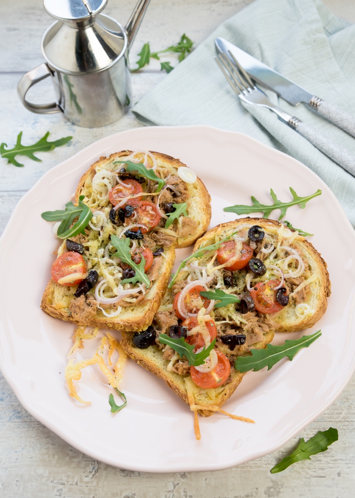 Brood + tonijn uit blik + kaas = de Tuna Melt! In menig restaurant mag de Tuna Melt als lunchgerecht niet ontbreken op de menukaart. Ik ben er ook dol op maar dit keer maak ik een open variant van de bekende tosti. Wel zo leuk en gezellig als je de ingrediënten ook nog kunt zien. 🙂
