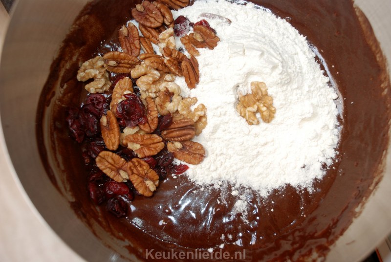 Spatel de bloem, noten en cranberries erdoor.