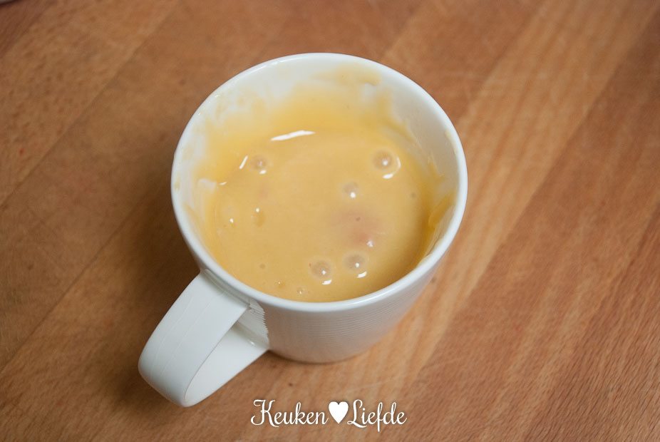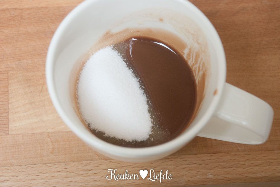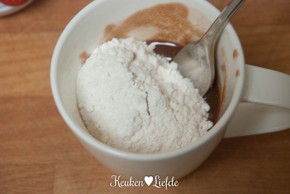 Eindelijk een mugcake recept dat werkt! Ik heb eentje gemaakt met rozijnen en een snuif kaneel en eentje met vanille-extract. Ik had ze er alleen wel iets te lang in gedaan; het was een beetje droog. Ik vind volgende keer een beetje minder suiker lekker. Dank voor het recept!