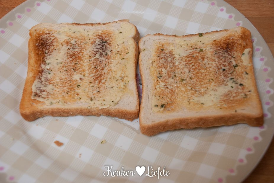 Toast het casinobrood in een broodrooster en besmeer met kruidenboter.