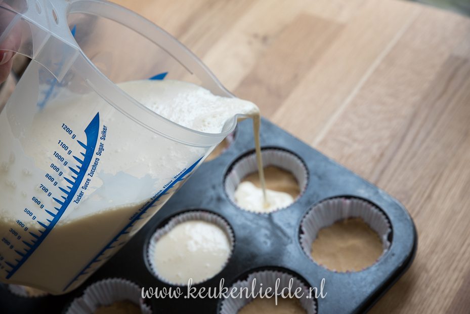 Verwarm de oven voor op 120 graden. Vul de bakvorm met de papieren cupcakevormpjes.