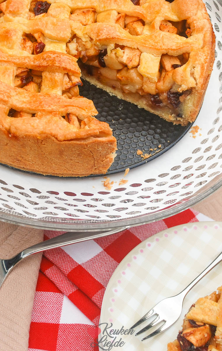Weet je wat ik altijd doe bij een appeltaart? Ik laat na het invetten van het bakblik een handje paneermeel door het blik glijden zodat die aan de boter kleeft, dat is iets onhandiger met het inleggen van het deeg maar als de taart klaar is geeft het een hele mooie buitenkant en glijdt hij hij ook probleemloos uit het blik.