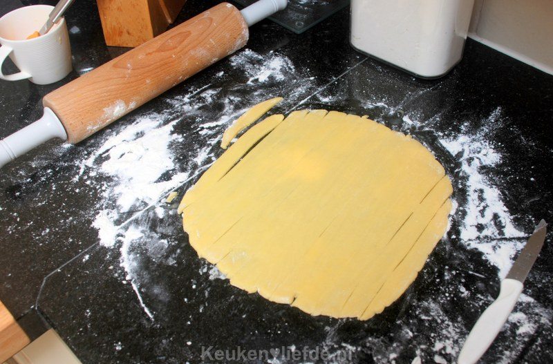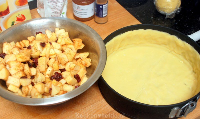 Jam op de bodem was een prima zet. Ik zet de appeltaart ook altijd weg met een plastic zak er over omdat het deeg dan de condens oppakt en niet hard word, door de jam was de bodem nu wat kleffig, dat vind vast niet iedereen lekker maar hier vond iedereen het heerlijk.