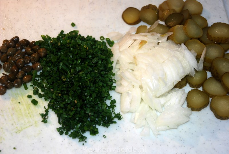 - 2 middelgrote augurken, in plakjes gesneden