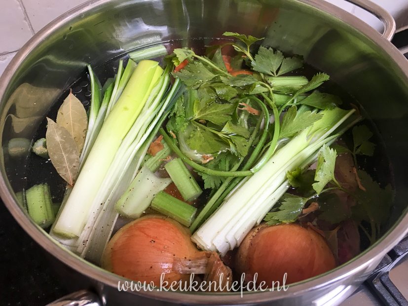 ’s Middags trek ik kippenbouillon van kippenbouten, zodat ik morgen een pannetje kippensoep kan maken.