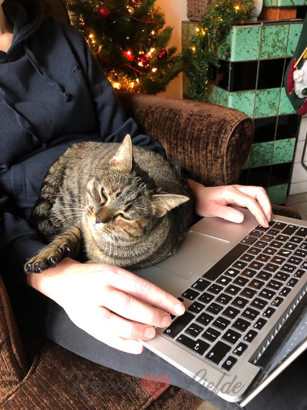 ’s Avonds kruip ik nog even achter de laptop om te werken. Althans, dat probeer ik. Valt namelijk niet mee als er een kat bovenop je ligt…