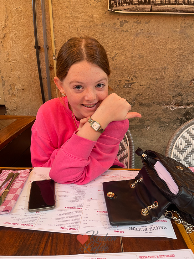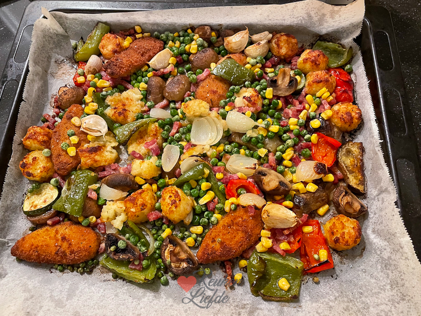 Johan en Ella-Marie gaan samen naar Den Bosch en ondertussen schrijf ik thuis het Kijkje in de keuken. Onderstaande foto krijg ik tussen de middag doorgestuurd als hint. De heer en dame zijn voor de lunch neergestreken bij Bistro Tantje Pietje. Ze namen allebei de BLT sandwich. ’s Avonds hadden ze niet zoveel honger meer dus besloot ik kliekjes op te maken. Ik gooide wat restjes groenten (champignons, paprika, ui, courgette) en spekjes uit de koelkast en röstirondjes en chicken tenders uit de diepvries op een bakblik, husselde het om met wat olijfolie, en bakte alles tegelijk in de oven. De laatste paar minuten van de baktijd gooide ik er nog wat diepvriesdoperwten, mais en een restje geraspte kaas bij. Smaakte prima. 😁