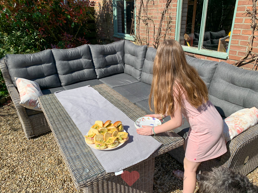 Samen buiten lunchen in de tuin, dat is een van de lichtpuntjes in deze tijd.