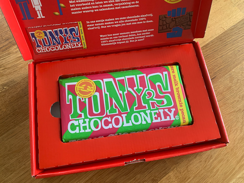 De meivakantie is hier begonnen en dat betekent dat Ella 2 weken vakantie heeft. ’s Middags komt er een vriendinnetje spelen en wordt er popcorn gebakken…. Ook komt er een lekker pakketje binnen: de nieuwe estafettereep van Tony’s Chocolonely in de smaak donkere melk brownie pecan. ’s Avonds eten we kliekjes waar ik geen foto van gemaakt heb.