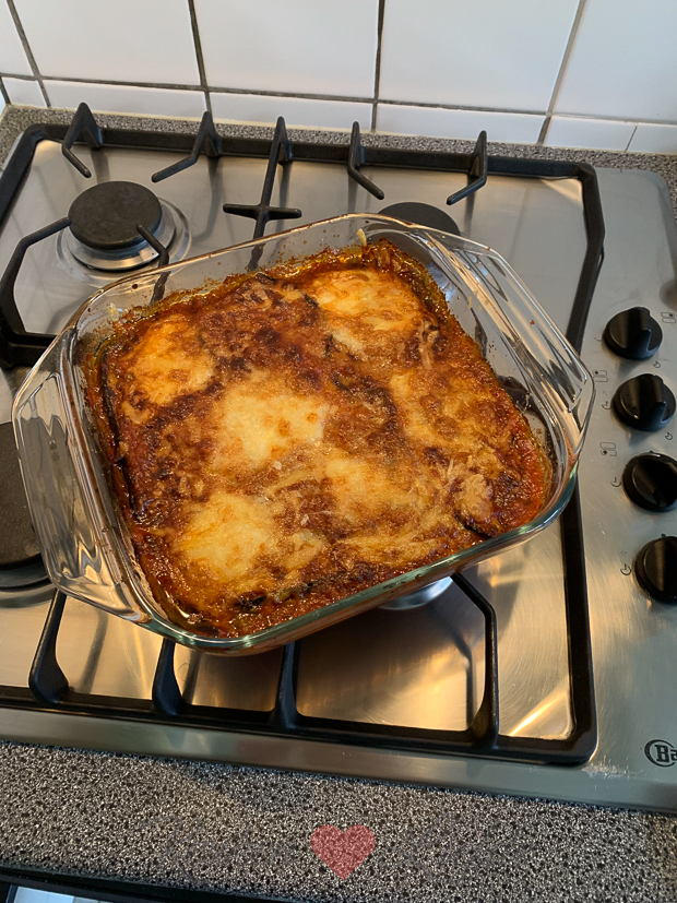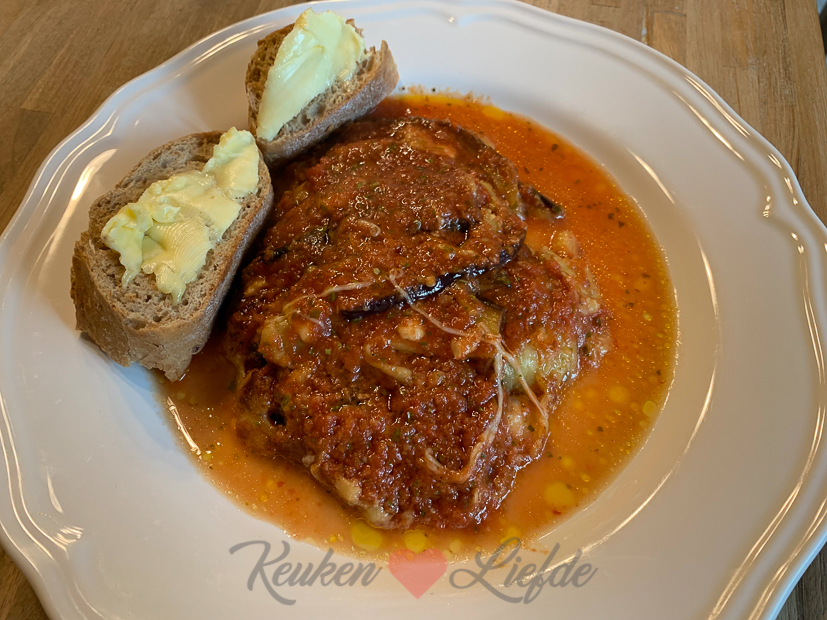 Ik heb weer een gewoon werkdagje en zit de hele dag achter de computer om recepten uit te schrijven en foto’s te bewerken. ’s Avonds kookt Johan want hij (en ik ook) heeft zin in melanzane di parmigiano, oftewel een aubergineschotel uit de oven. Hij maakt hem volgens dit recept op KL. Erbij een afgebakken stokbroodje met kruidenboter. We hebben weer zitten smullen!