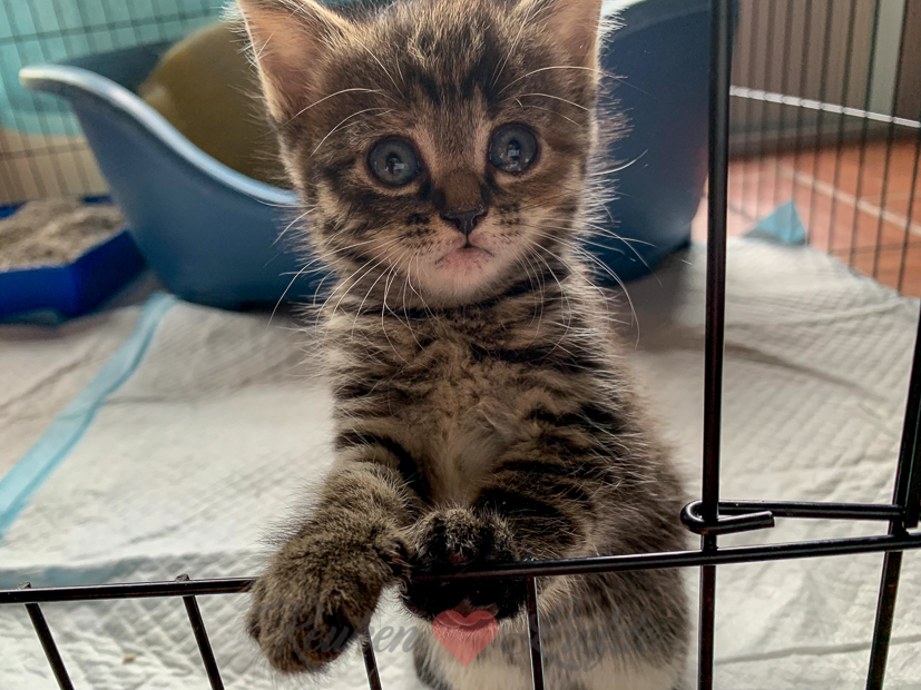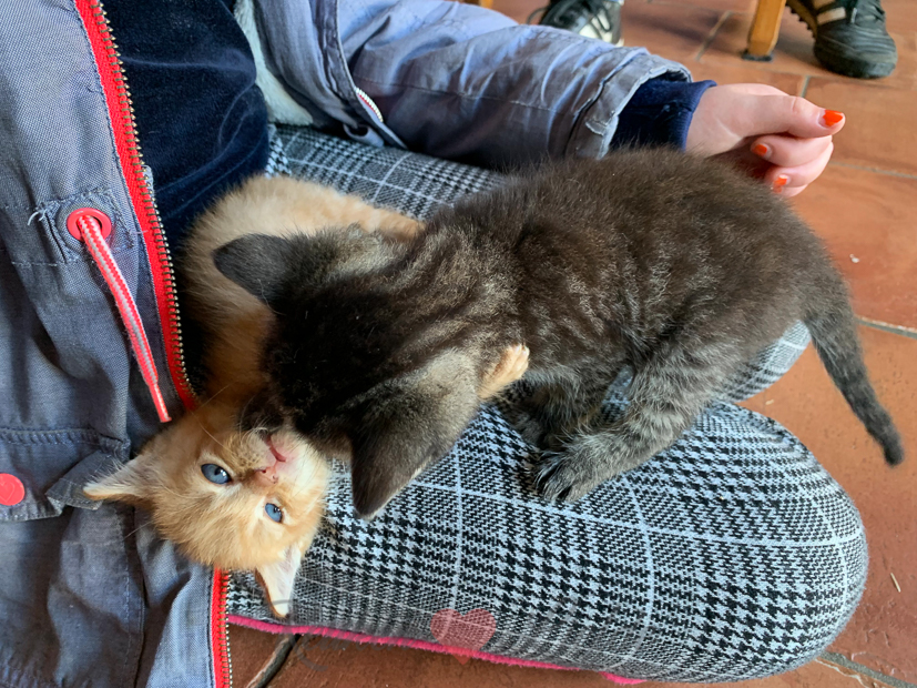 Ella-Marie en ik gaan ’s middags weer even bij onze twee kittens kijken. Ze zijn inmiddels 5 weken oud en al flink gegroeid. Het beginnen echte deugnietjes te worden!