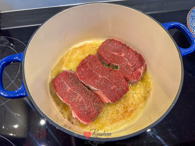Maandagochtend ging ik naar de winkel om boodschappen te doen voor het avondeten. Ik wilde hachee maken maar de riblappen waren overal uitverkocht. Gelukkig kon ik wel sukadelappen vinden, die zijn net zo lekker. Erbij maakte ik aardappelpuree en warmde ik de rodekool met appel op die ik eerder had gemaakt en ingevroren. Het smaakte ouderwets lekker.