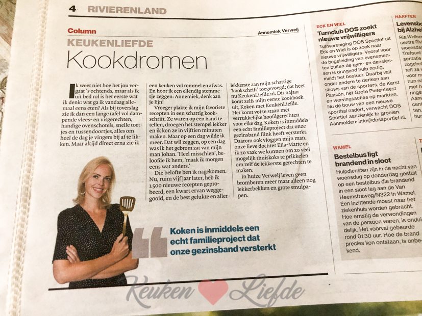 In de ochtend komt fotograaf Raphaël Drent langs om een portretfoto van mij te maken voor de Gelderlander. Vanaf deze maand mag ik af en toe een column voor ze schrijven. Hoe leuk is dat! In mijn eerste column vertel ik je over mijn kookdromen… Heb je me al gespot? Ik sta in de verspreide zaterdageditie (afgelopen zaterdag als je dit leest), maar je kunt de column ook hier online lezen. Onderstaande foto is een van de foto’s die Raphaël van mij maakte. Ik vind hem zo leuk! 🙂