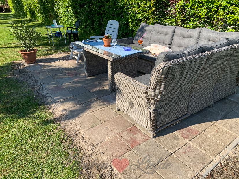 Johan en ik bekijken de waterpret toe vanaf ons nieuwe terras. Aangelegd door onszelf! ?