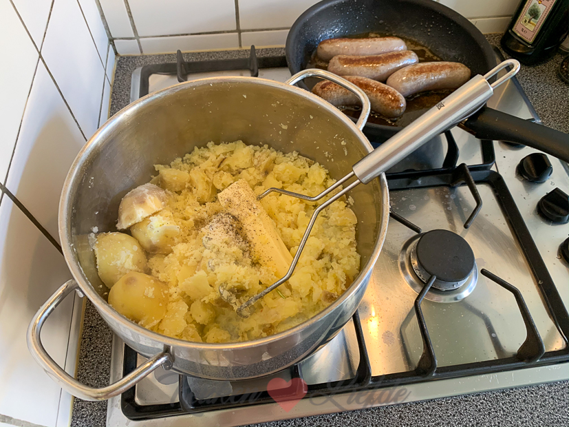Als het ’s avonds afkoelt ruimen we buiten de boel op en gaan we naar binnen om eten te koken. In het verspakket dat ik kreeg van GRO zitten alle ingrediënten voor een zomerse rucola stamppot met gebakken Blended worst en zelfgemaakte tomatensalsa. Makkelijk om te maken en snel klaar dus dat wordt het vanavond! Zowel de worst als het gerecht zelf waren erg lekker!