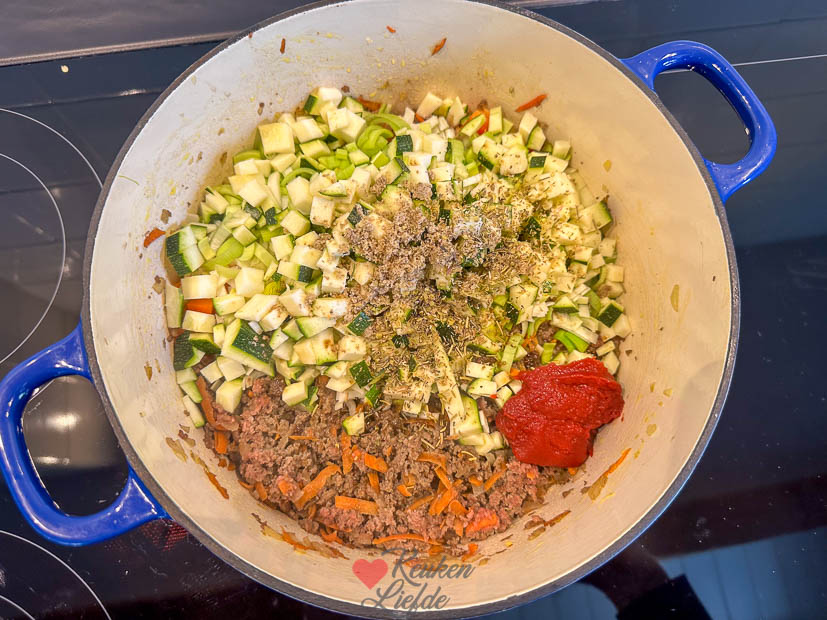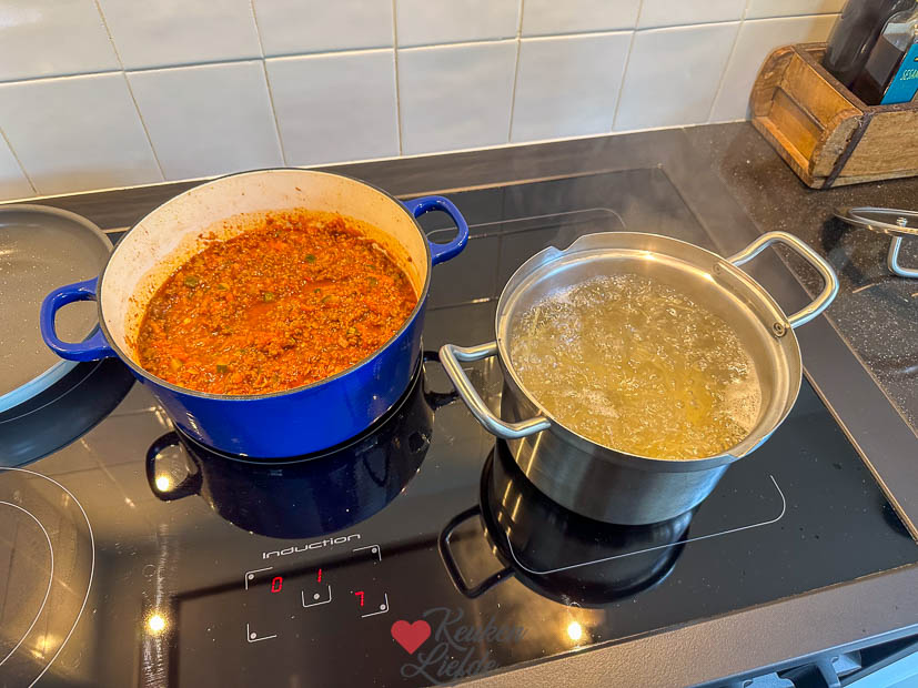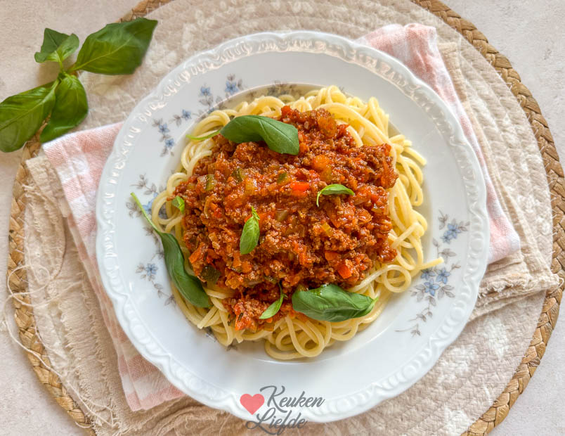 Ik kreeg de spaghetti niet meer uit mijn hoofd dus begin van de middag maakte ik een grote pan vol spaghettisaus met lekker veel verse groente zoals wortel, bleekselderij, courgette, prei en paprika. Ik deelde een stories op IG en jullie vroegen massaal om het recept te delen dus dat ga ik binnenkort doen.