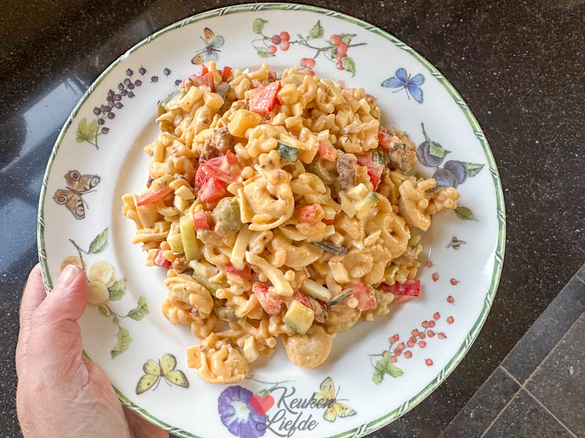 Ella-Marie en ik hadden eind van de middag een afspraak bij de kapper en toen we thuiskwamen had Johan macaronisalade gemaakt. Die was gruwelijk lekker! Johan bakt altijd chorizo uit in de koekenpan en doet die bij de macaronisalade. Dat geeft zoveel smaak. En verder gooit hij er zo’n beetje alles in wat hij maar tegenkomt in de koelkast. Veel dus. 😆