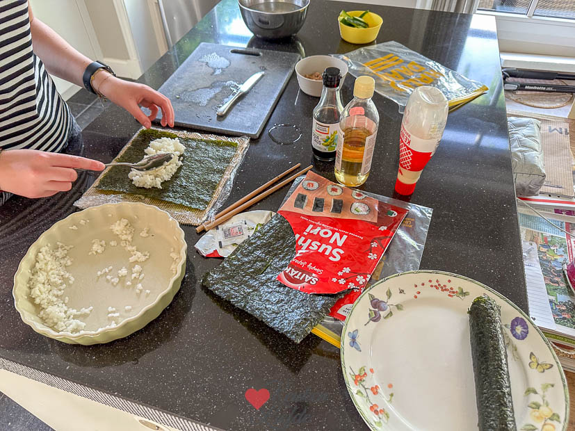 ’s Avonds aten we kliekjes en Ella maakte sushi.