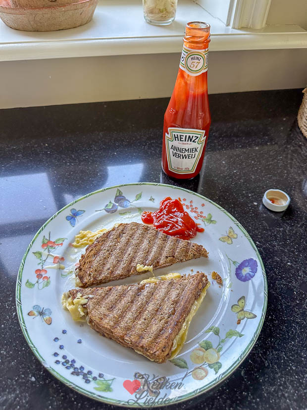 Ik maakte tussen de middag een lekkere tosti als lunch met een beetje ketchup erbij. Die smaakt toch het lekkerst als je eigen naam erop staat. 😉