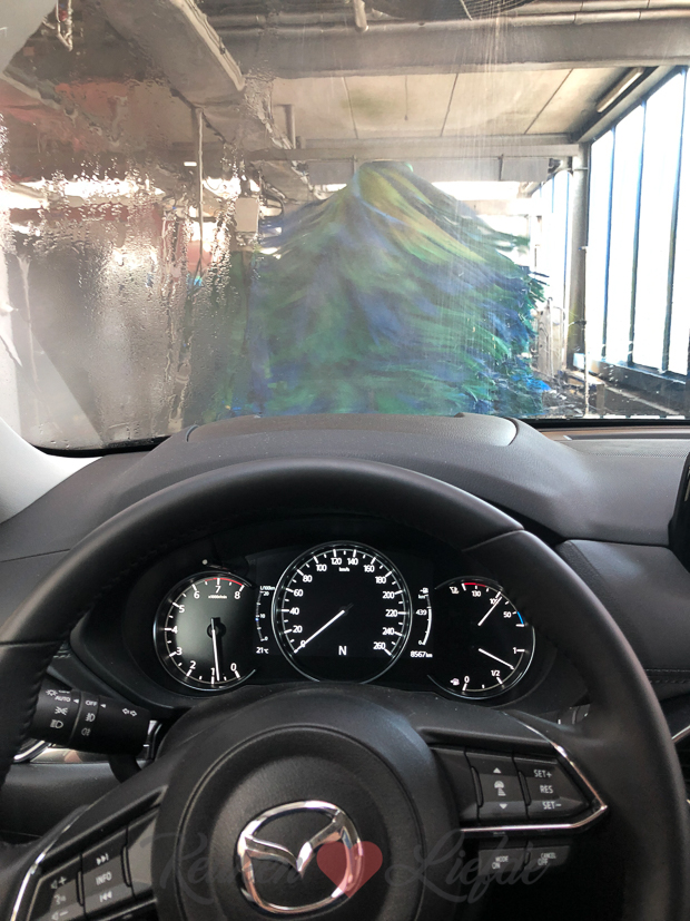We zijn vandaag op pad met de Mazda CX-5 om boodschappen te doen in Duitsland. Eerst rijden we hem even door de wasstraat, dat was nodig!