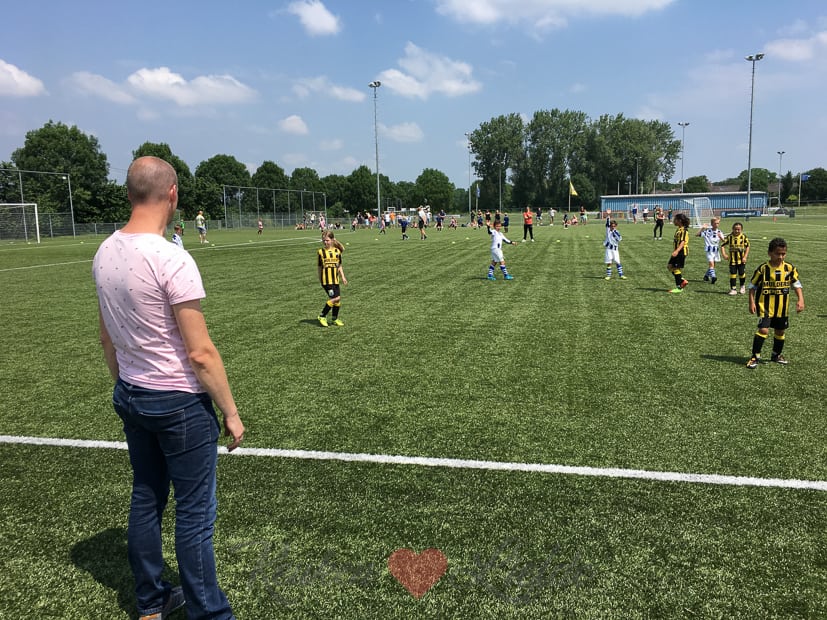 Als ik klaar ben haast ik me naar het voetbalveld en kan ik de laatste twee wedstrijden zien. De eerste drie wedstrijden winnen ze, maar de laatste wedstrijd verliezen ze met 4-2. Jammer, maar tweede worden in je poule is nog steeds supergoed!