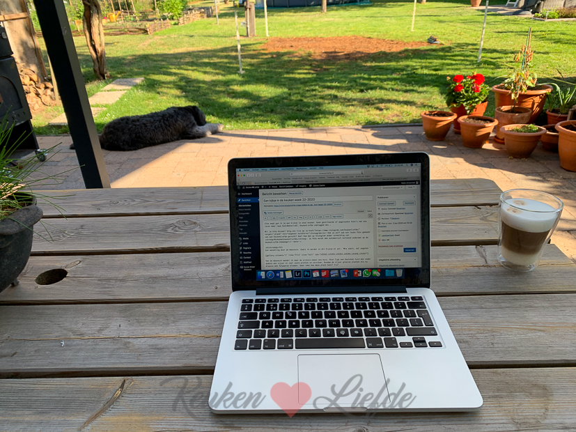 Het belooft een warme dag te worden vandaag. Als ik ’s ochtends met Nacho naar buiten ga is het al lekker warm. Ik pak mijn laptop en ga buiten aan de picknicktafel dit Kijkje in de keuken schrijven. Met een heerlijke kop cappuccino erbij. Vaste prik in de ochtend!