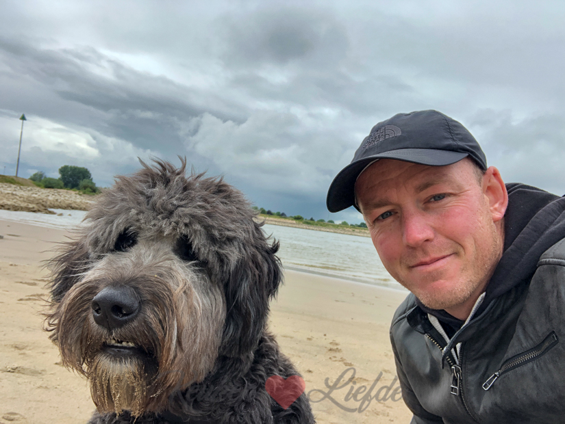 Terwijl ik aan de gang ga voor het avondeten wandelt Johan met Nacho even naar het waalstrand.