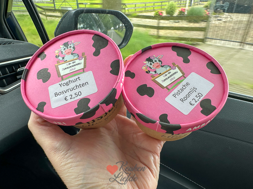 Op de terugweg halen we een boodschapje voor het avondeten en kaas en een ijsje bij de boerderijwinkel. Weer thuis gaat de tiener leren voor de toetsweek volgende week. Ik pak de stofzuiger en Johan maakt het avondeten. Er staat groentesoep met gehaktballetjes en naanbrood met pesto, ham, tomaat, burrata en pijnboompitten op het menu. Dit recept.