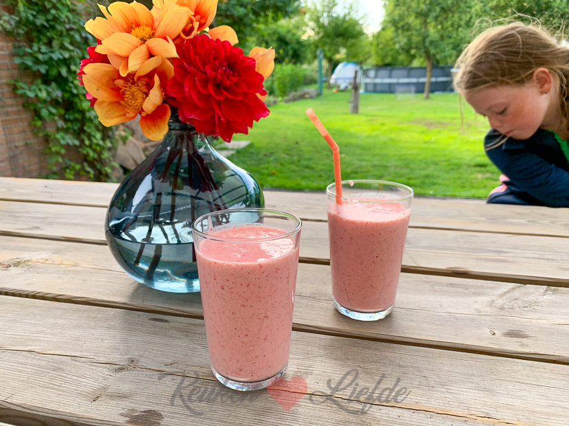Als Ella-Marie ’s avonds terugkomt van de scouting, maakt Johan een verse aardbeienmilkshake om het weekend in te luiden. 🙂