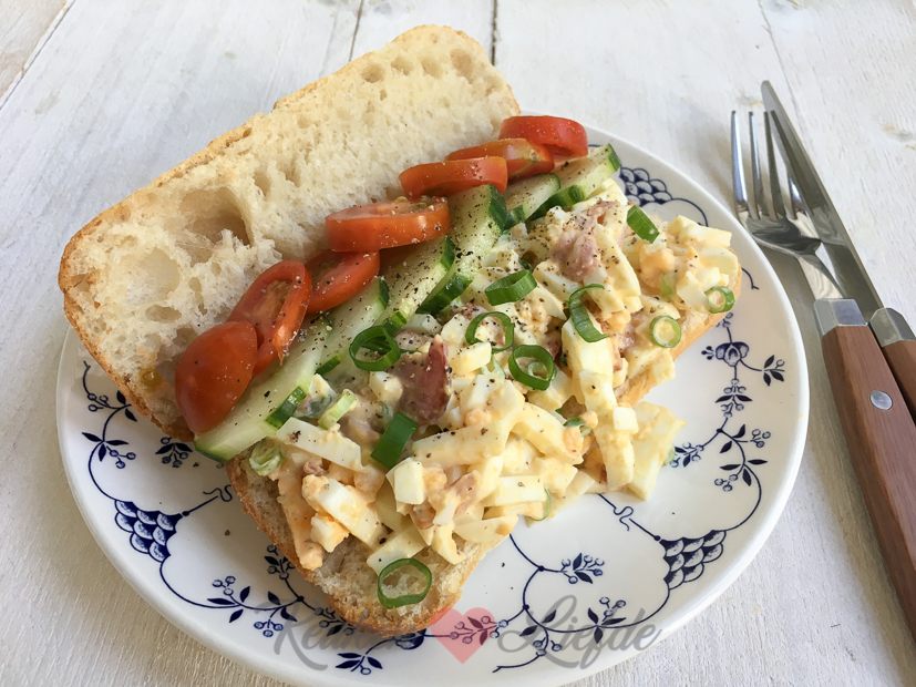Ella-Marie logeert tot woensdag bij mijn ouders dus ik kan vandaag de hele dag werken. Ik moet ’s ochtends eerst naar het Pento in Utrecht voor mijn oren. Rond het middaguur ben ik weer thuis en ik maak ik een broodje eiersalade voor mezelf klaar als lunch. Ik maak er maar meteen foto’s van zodat ik het recept op KL kan delen. Het was een heerlijk broodje namelijk!