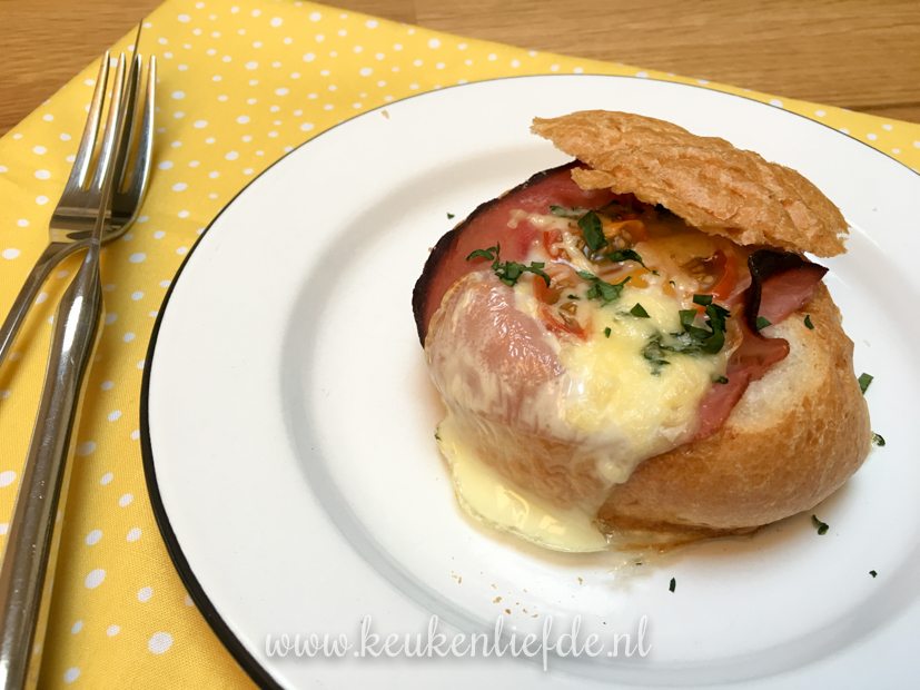 Daarna maak ik een nieuwe video voor mijn YouTube-kanaal waarin ik laat zien hoe je dit gevulde broodje met ei en ham uit de oven maakt. Perfect gelukt met een nog lopende dooier!