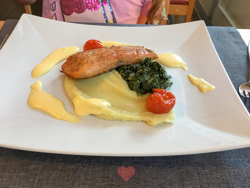 - Gebakken zalm met aardappelpuree en spinazie