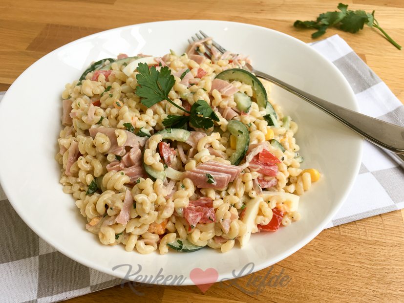 Voor een nieuwe kookvideo maak ik macaronisalade die we eten als lunch.
