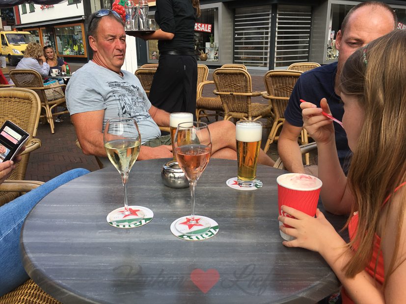 Drankje op het terras in de stad met Johan zijn ouders.