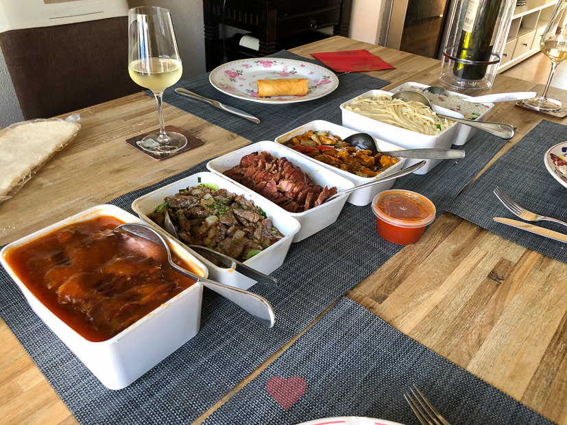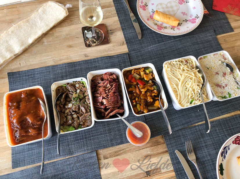 ’s Avonds halen we een Vietnamese rijsttafel voor twee personen. Dat is voor ons drieën genoeg eten voor twee dagen en dan hoeven we vandaag en morgen niet meer te koken. Lekker makkelijk. We bestellen bij ons favoriete Vietnamese restaurant An Nam in Tiel en zoals altijd is het weer smullen geblazen! Johan bestelt er nog extra een bak babi pangang en mini loempia’s bij.