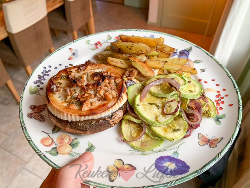 Johan haalt Ella-Marie ’s avonds weer op bij zijn ouders. ’s Avonds maak ik een recept dat ik vond op de website van HelloFresh. Courgette en gevulde portobello met geitenkaas uit de oven en erbij gebakken aardappels. Ik gebruikte Opperdoezer aardappels die ik in frietjes sneed, even voorkookte en daarna bakte in de koekenpan. Was superlekker en zeker voor herhaling vatbaar.