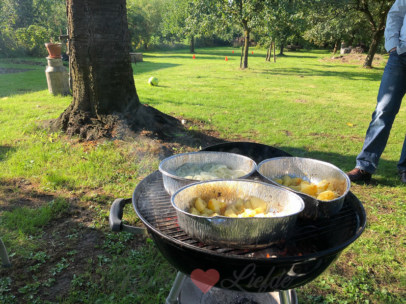 Na het ontbijt maakt Johan een huzarensalade en kookt alvast wat aardappels. Vanavond komen mijn ouders en broers eten en steken we de barbecue aan.