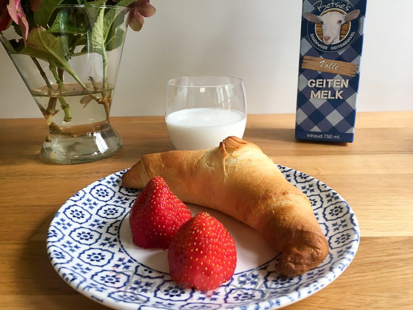 Ik begin de dag met een zelfgebakken croissant en een glas geitenmelk. Drink jij weleens geitenmelk? Het is romig, vol van smaak en ontzettend lekker!
