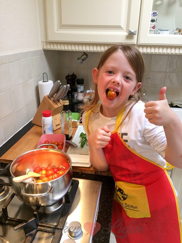 ’s Avonds eten we tomatensoep gemaakt door Ella-Marie. Van Johan zijn oma hadden we een zak vol rijpe cherrytomaten uit de kas gekregen en daar maak je de lekkerste soep van!