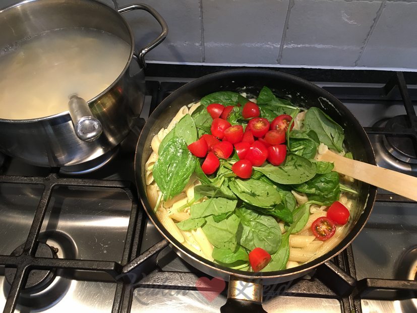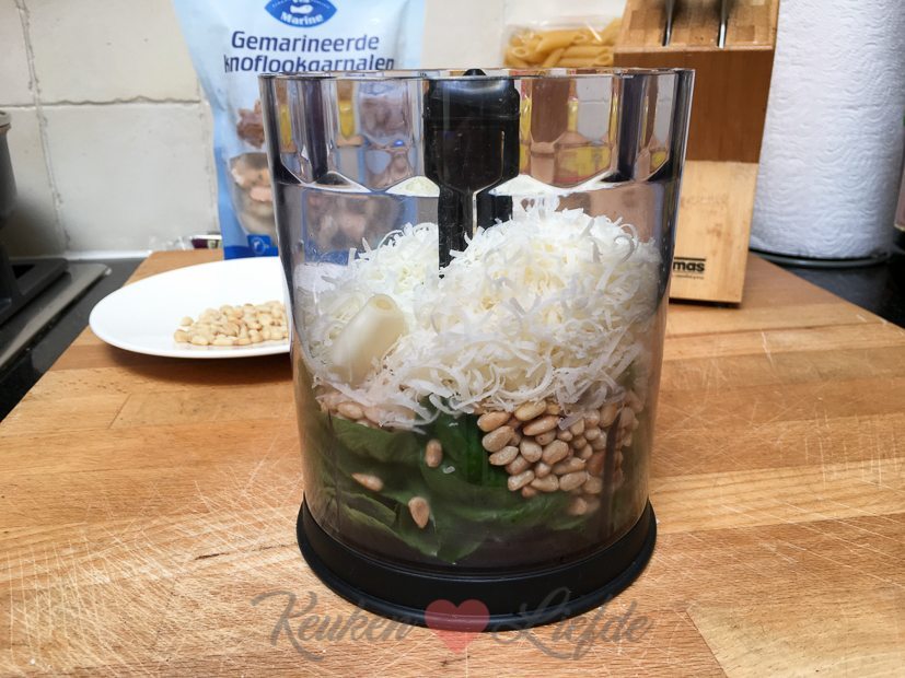 Mijn basilicumplantje buiten begint een beetje op zijn eind te raken dus ik besluit de laatste mooie blaadjes te plukken en er pesto van te maken. Daar hoort natuurlijk een lekker gerecht bij! Ik maak pasta met garnalen in pestoroomsaus. Mijn favoriete pastagerecht!