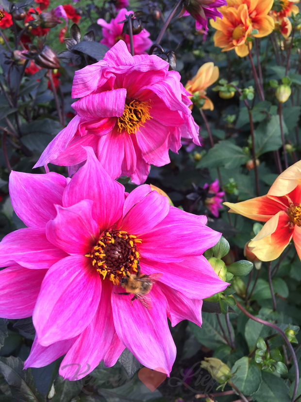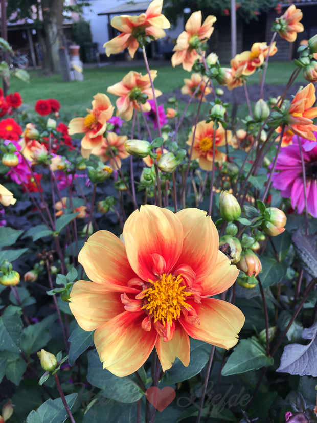 Na de F-1 race halen Johan en ik Ella-Marie weer op bij de ouders van Johan. Eenmaal weer thuis genieten we nog even van het mooie weer in onze tuin. Johan heeft een begin gemaakt met het omspitten van de moestuinbedden en de Dahlia’s staan er prachtig bij. Ik zie trouwens wel dat er nog wat onkruid getrokken moet worden… Klusje voor morgen!