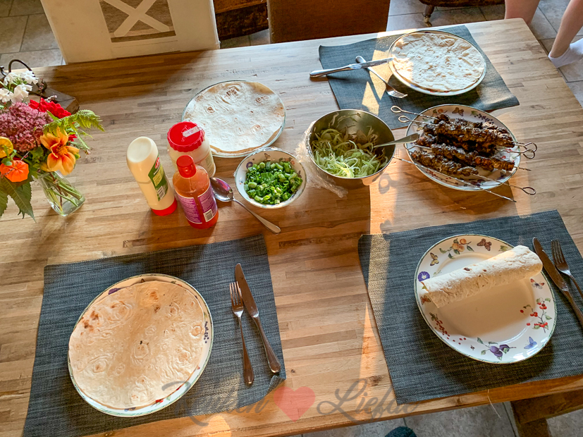 De rest van de zondag rommelen we rondom huis. ’s Middags wordt er natuurlijk weer F1 gekeken, maar ik haak snel af als Max uitvalt. Johan kijkt de race wel af. Daarna steekt Johan de Weber aan voor het avondeten. Op het menu vanavond staan wraps met Oosterse kipspiezen, en wittekoolsalade. Dit recept. Zó lekker!