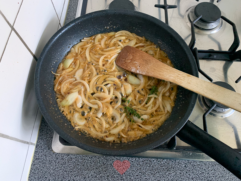 Vanavond eten we Belgisch stoofvlees. Dit recept maar vandaag maak ik het in de slowcooker. Ik maak het ’s ochtends al zodat ik zeker weet dat het vanavond zacht is. Ik bak eerst het vlees in de pan en schep het in de slowcooker. Dan in het bakvet de uien en knoflook bakken met een flinke schep suiker om te karameliseren. Takje tijm, 2/3 flesje herfstbok en 2/3 pot runderfond erbij en op hoog vuur wat laten inkoken. Over het vlees gieten in de slowcooker. Dan twee sneetjes witbrood met mosterd erbovenop en sudderen maar.