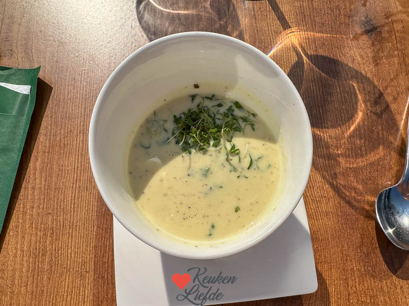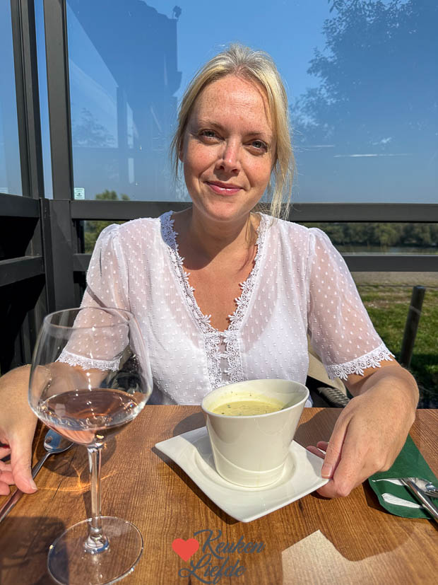Ik heb ’s middags een lunchdate met mijn lieve vriendinnetje Miranda en daar had ik heeeeel veel zin in. We gingen op het terras van Bistro de Bolle in Boven-Leeuwen zitten in het zonnetje en hebben heerlijk gegeten, gedronken en uren bijgekletst. En nog duurde het te kort. We hadden allebei een mosterdsoepje en een tosti met brie, zongedroogde tomaatjes en serranoham. Genoten.
