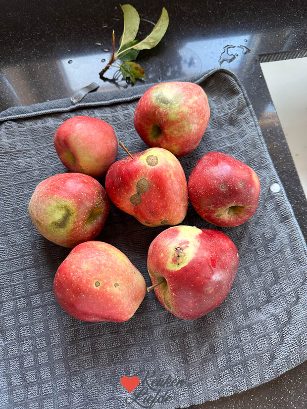 Ella-Marie heeft begin van de middag een voetbalwedstijd in Nijmegen en het is onze beurt om te rijden en te vlaggen. Johan gaat met Ella mee en ik vermaak me thuis. Eerst pluk ik appels om een appeltaart mee te maken (dit recept) en zet die daarna op de foto. Het recept voor appeltaart op de website was namelijk dringend aan een update toe. Daarna vul ik een emmer met sop en ga ik het huis poetsen. Dan nog even snel een pannetje mosterdsoep (dit recept) maken voor het avondeten, dan is dat ook alvast klaar.