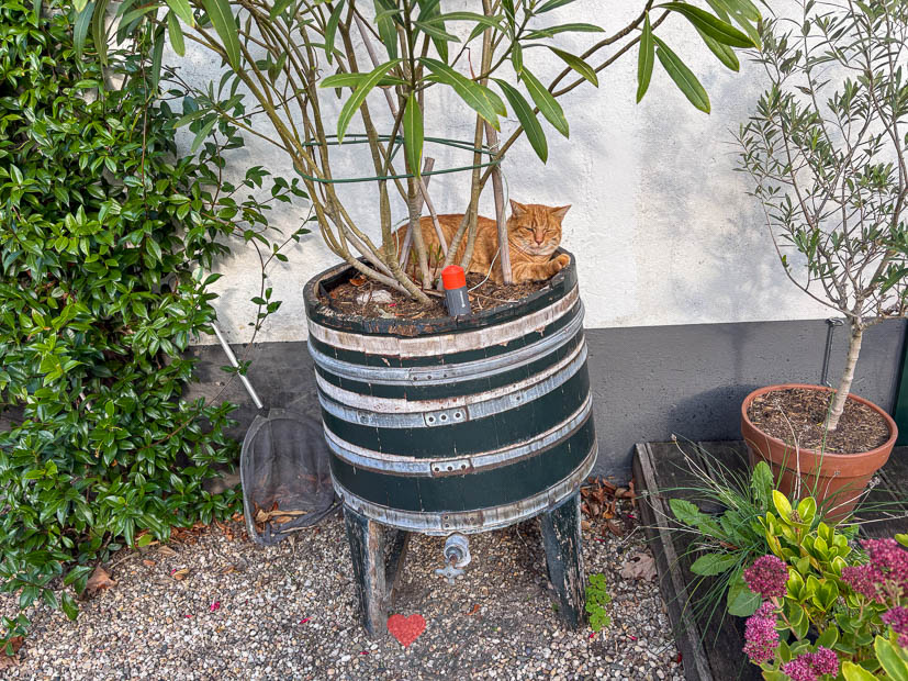 Weer thuis ging Johan nog even rommelen in de tuin en grasmaaien. Ik ben dol op de herfst met zijn kortere dagen, de frissere lucht, geur van nat blad, het verkleurende blad; een feest voor al je zintuigen. Puk (de kater) geniet er ook van!