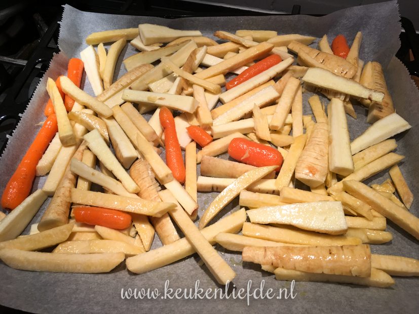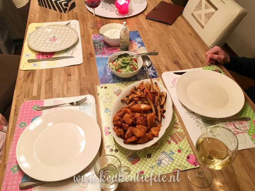 Na het maken van de gezonde kapsalon maakte ben ik fan van groentefrietjes uit de oven. Vandaag staan ze weer op het menu, maar dit keer serveer ik ze met kibbeling, ook uit de oven. Erbij serveer ik wat ijsbergsla en zelfgemaakte remouladesaus. Jam! Trouwens, dit is een heel lekker recept voor zelfgemaakte kibbeling!